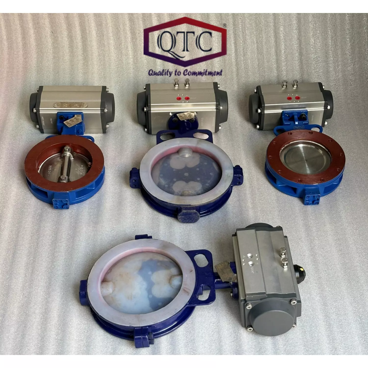 QTC Make Lining Butterfly Valve Pneumatic Actuator Operated Wafer Design